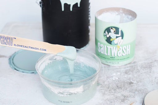 Saltwash ® -Pulver ist ein einfach zu verwendendes Strukturpulver, welches gemischt mit einer Farbe, einen mehrschichtigen und strukturierten Effekt verleiht. Diesen Mix aus Farbe und Saltwash kann auf jedes Möbelstück, oder jede vintage Oberfläche aufgetragen werden, um mit wenigen Handgriffen einen authentischen,  Look zu erhalten. Ganz so als ob es seit Jahren an der Küste verwittert ist. Saltwash ® Pulver wird in den USA hergestellt.