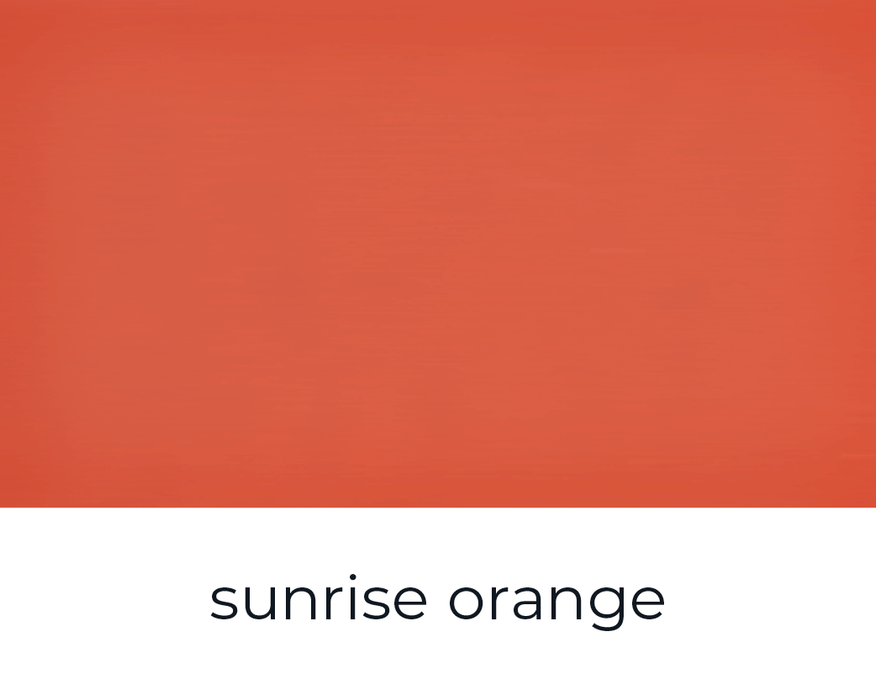 Sunrise Orange ist ein lebendiges, sonniges Orange, das sofort für gute Laune sorgt. Ein leuchtender, kräftiger und warmer Orangeton, der an den Himmel kurz nach Sonnenaufgang erinnert. Die Farbe wirkt lebendig, strahlend und zugleich harmonisch – wie das erste Licht des Tages, das alles in ein warmes Leuchten taucht.